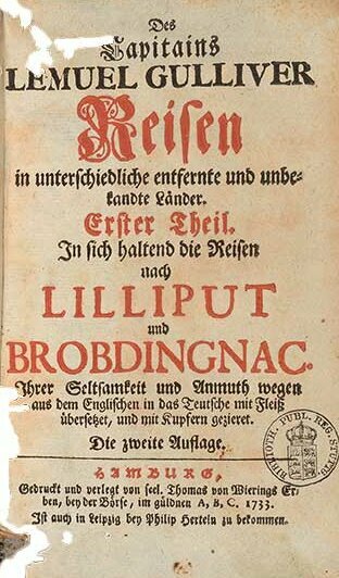Gullivers Reisen ist ein satirischer Roman des irischen Schriftstellers Jonathan Swift (1667–1745), in dem dieser seine Verbitterung über zeitgenössische Missstände zum Ausdruck bringt. Geschildert werden die insgesamt vier Reisen des Schiffsarztes und späteren Kapitäns Lemuel Gulliver. Auf der Insel Liliput lernt er winzige Einwohner kennen, auf der Insel Brobdingnag lebt Gulliver unter Riesen. Jede seiner Reisen ist mit einer Karte bebildert, die topographische Bezüge zu einer real existierenden Insel aufweist wie z.B. zur Inselwelt des Indischen Ozeans oder zur Nordwestküste Nordamerikas.