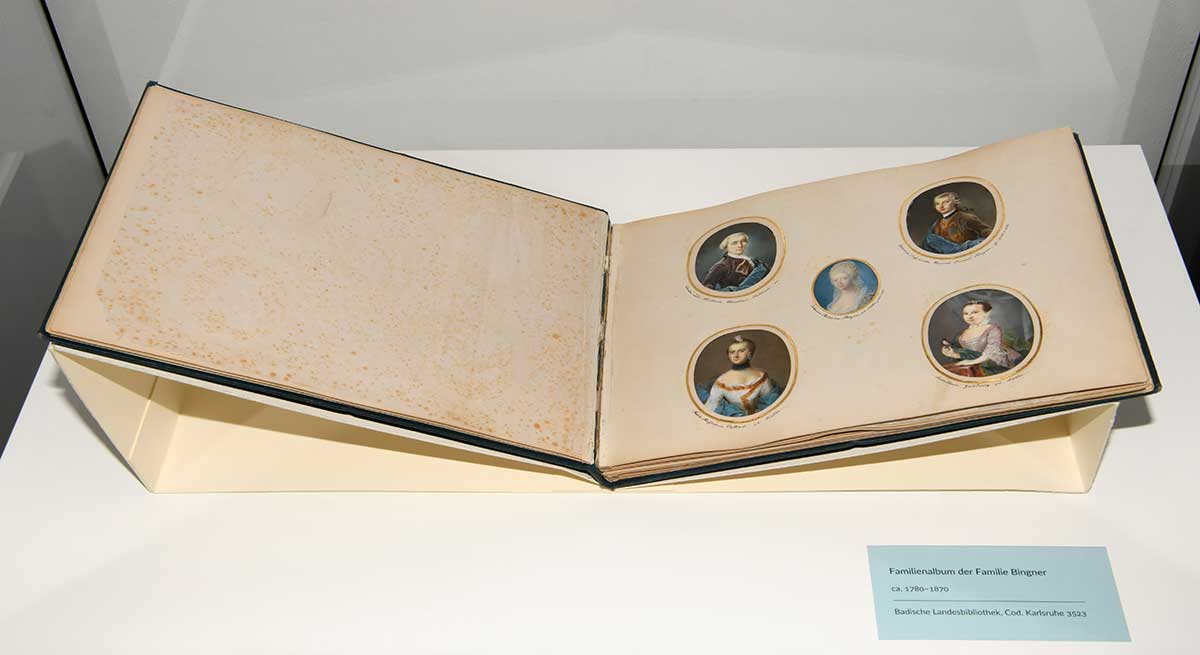Ein Bilderalbum besonderer Art fand im Dezember seinen Weg in die Badische Landesbibliothek. Es enthält 42 Porträts der Familie Bingner, von der seit dem 18. Jahrhundert mehrere Mitglieder hohe Ämter in Baden innehatten. Zusammengestellt wurde das Album vermutlich von dem prominentesten Mitglied der Familie, dem Juristen Adrian Bingner (1830–1902). In Karlsruhe geboren, studierte er in Heidelberg und wurde dort zunächst Amtsrichter. Nach verschiedenen Stationen, u.a. im badischen Justizministerium, wurde er 1879 als Senatspräsident des II. Zivilsenats an das neu gegründete Reichsgericht in Leipzig berufen.