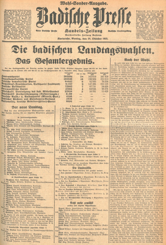 Abb. 1: „Die badischen Landtagswahlen“, in: Badische Presse vom 26. Oktober 1925, Quelle: BLB.