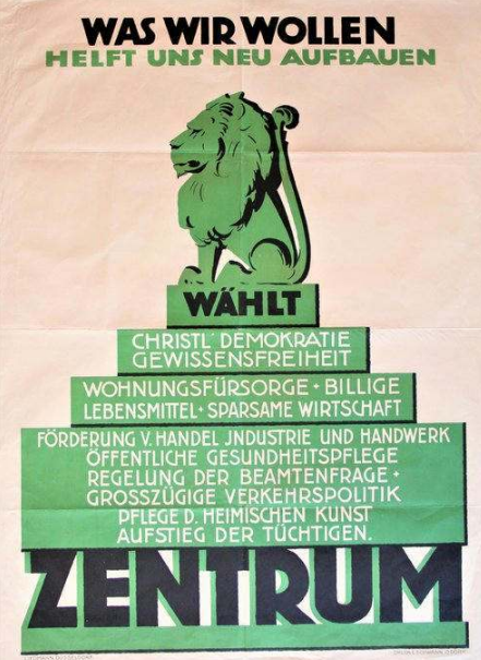 Die politischen Gegensätze zur Sozialdemokratie – immerhin der Koalitionspartner! – drückten sich am deutlichsten im grundsätzlichen Selbstverständnis aus: orientierte sich das Zentrum in der Innen- uns Sozialpolitik für eine berufsständische Politik des „gerechten, sozialen Ausgleichs“, verurteilte es gleichzeitig den materialistischen Ansatz der „Klassenparteien“, denn „Klassenkampf [sei] ein Unglück für den Staat und Standesegoismus gefährde[…] seinen Bestand.“