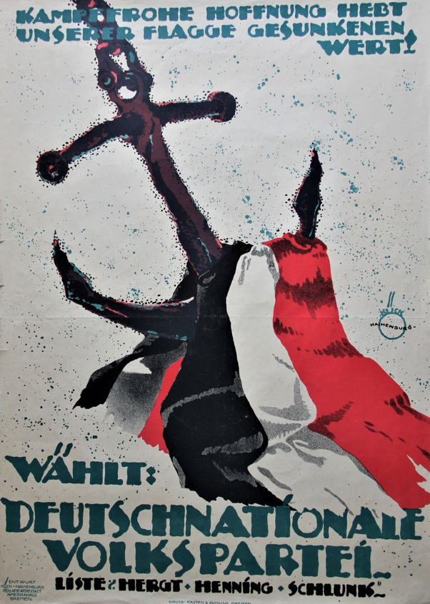 Abb. 5: Plakat „Kampffrohe Hoffnung hebt unserer Flagge gesunkenen Wert!“ der DNVP zur Reichstagswahl am 6. Juni 1920 (vermutlich), Quelle: Stiftung Reichspräsident-Friedrich-Ebert, © CC BY-NC-SA.